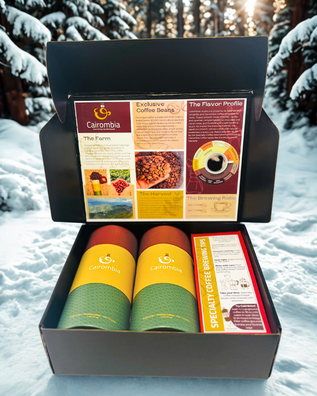 Every sip reflects the transparency, integrity, and craft that define who we are. Because at Cairombia, we believe great coffee doesn’t just wake you up — it connects you to where it came from. What more could you ask for in a Gift Box?